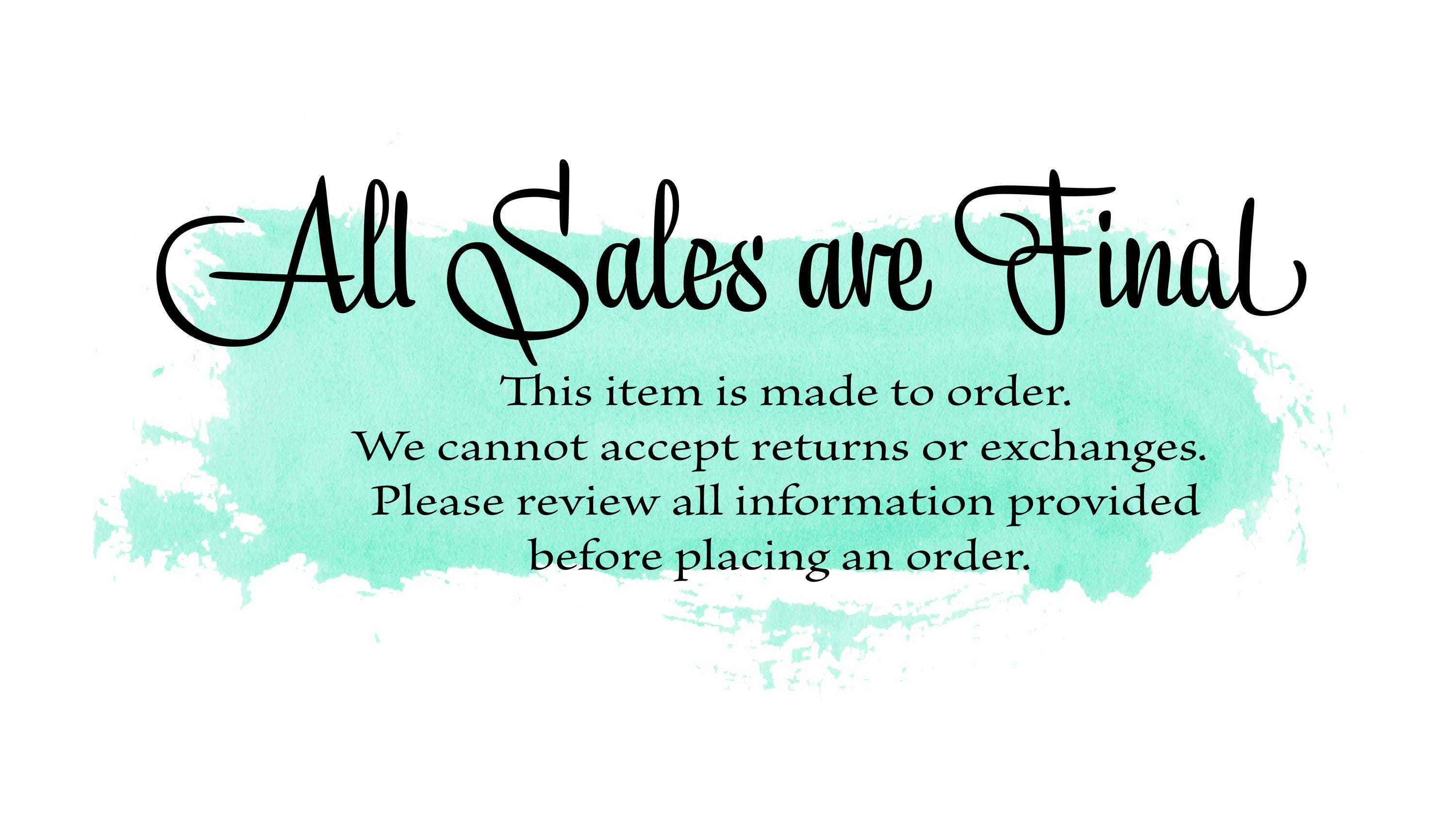 This item is made to order; therefore, we cannot accept returns or exchanges. Please check sizing carefully.