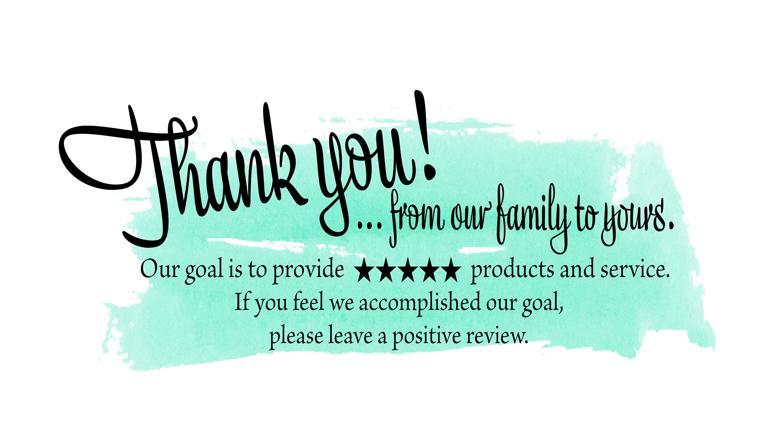 💬 It is our ultimate goal to provide ⭐⭐⭐⭐⭐ products and service. If you feel we accomplished our goal, please leave our shop a positive review.
