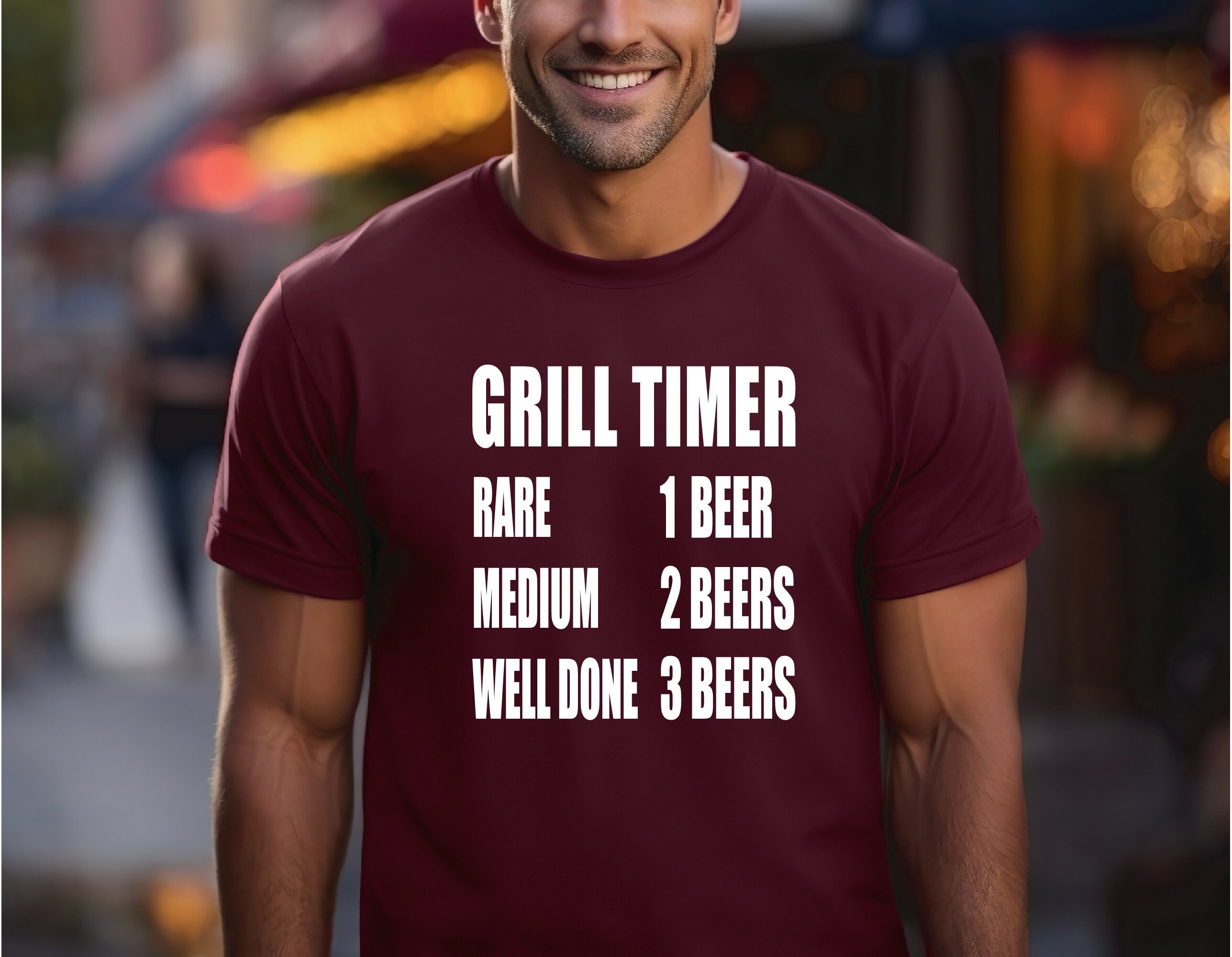 Grill Master Shirt | BBQ Grill Timer | Professional Griller Shirt | Rare 1 Beer Medium 2 Beers Well Done 3 Beers | Gift for Him | Free Shipping