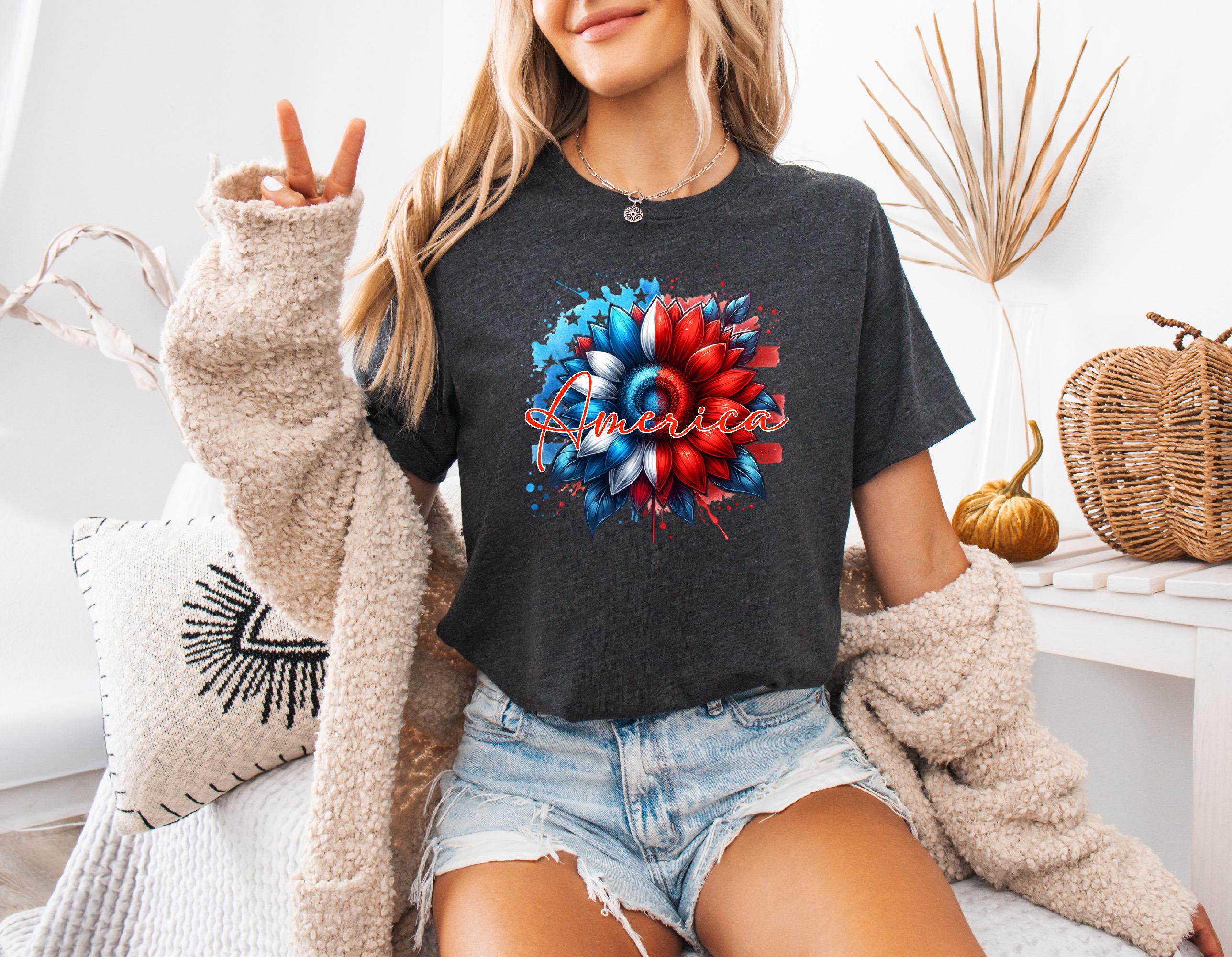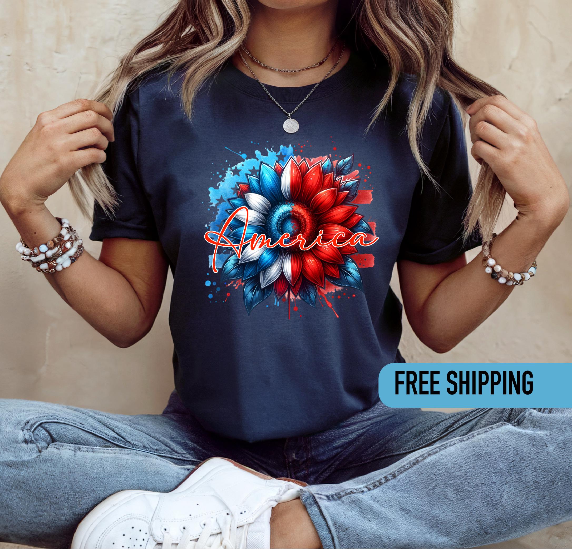 Trendy Independence Day Shirt | Red White and Blue Sunflower | July 4th | 4th of July Party Shirts | Gift for Her | Free Shipping