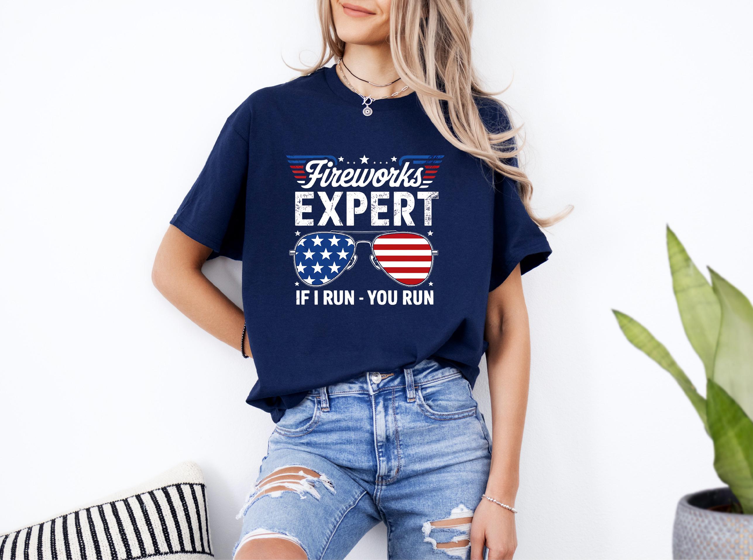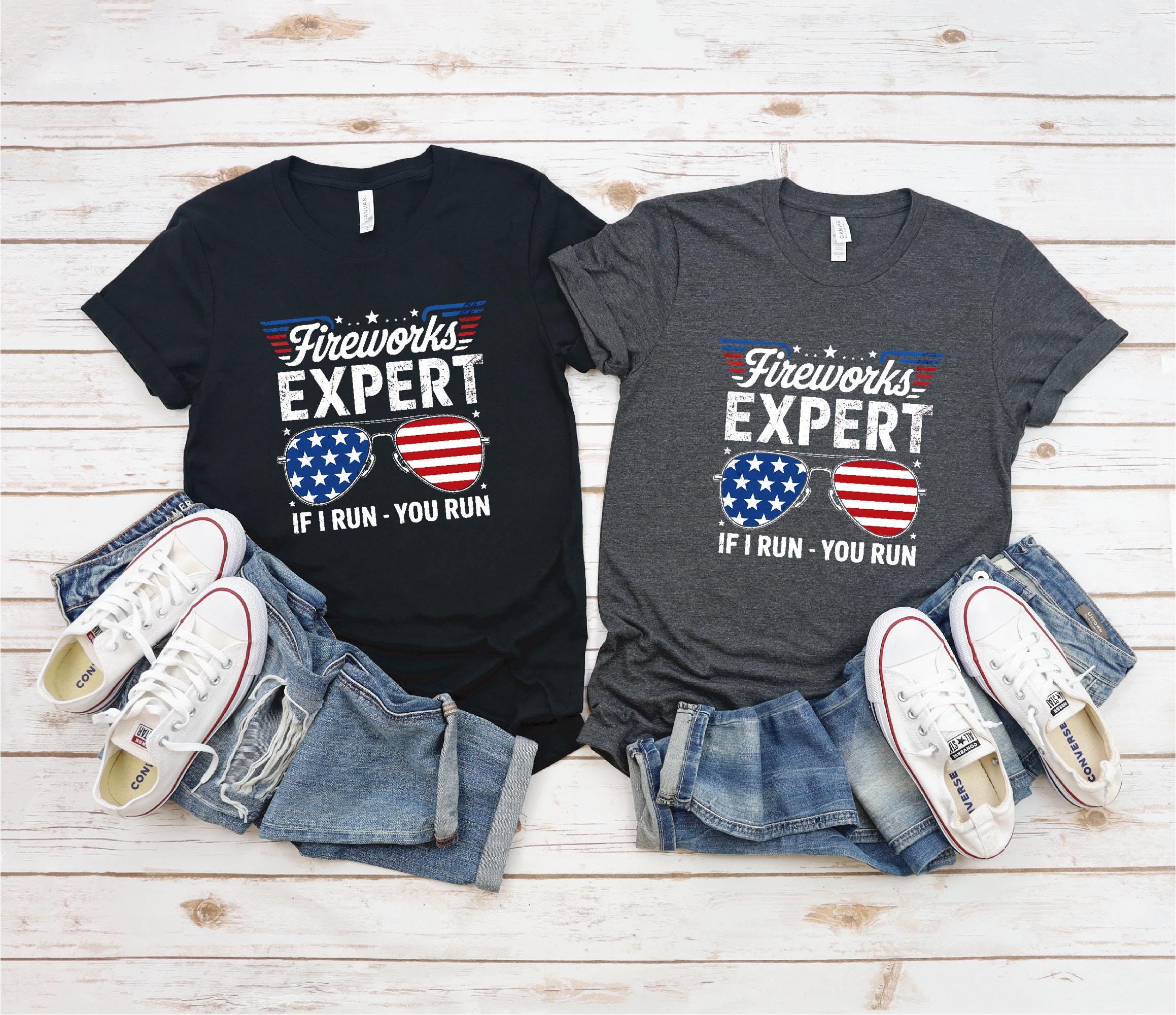 Cool 4th of July Shirt | Fireworks Expert | If I Run You Run | Independance Day | Funny July 4th Tshirt | 4th of July Party | Free Shipping