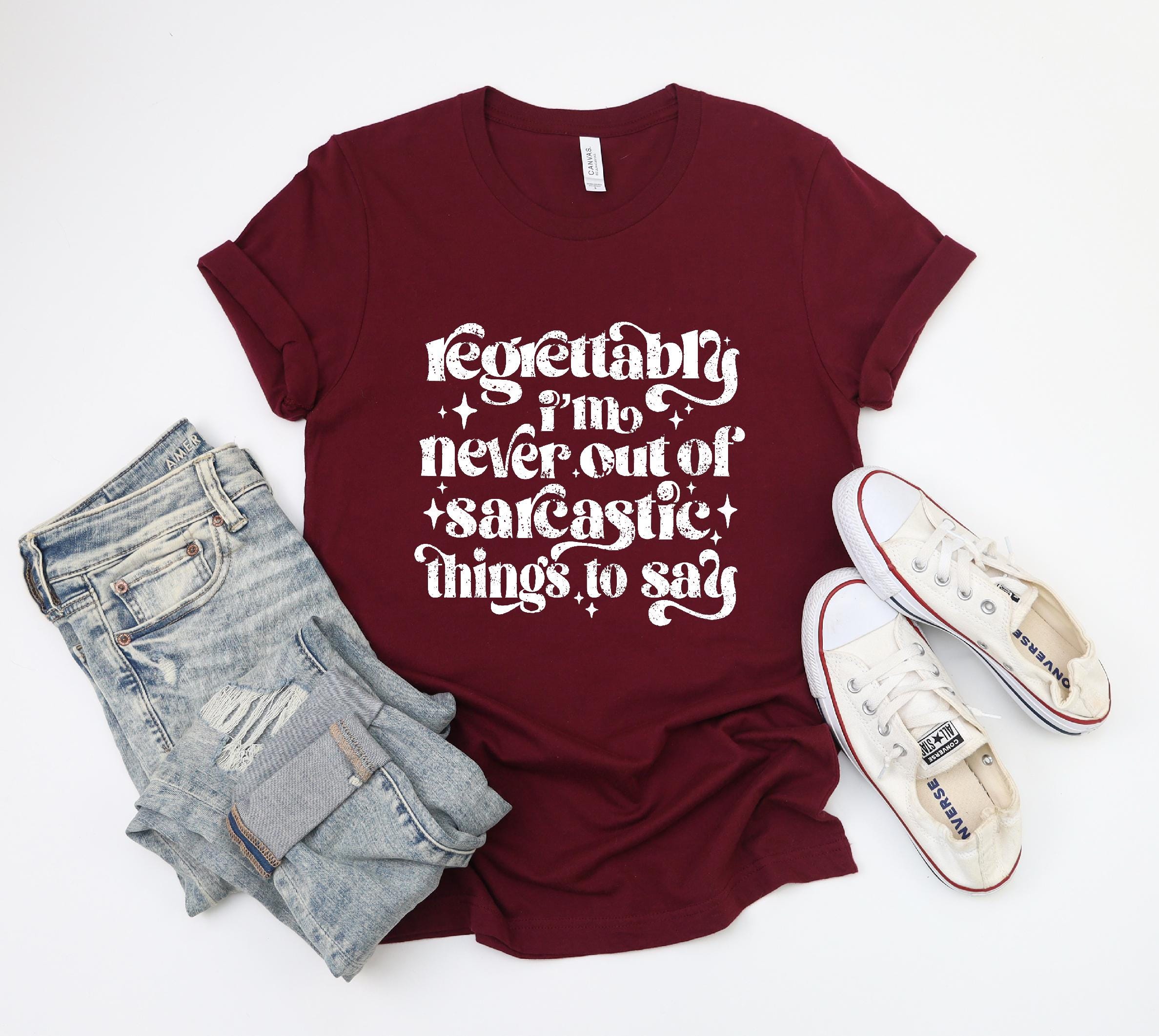 Sarcastic Shirt | Regretably I Never Run Out of Smart Things To Say | Funny Quotes Shirt | Free Shipping