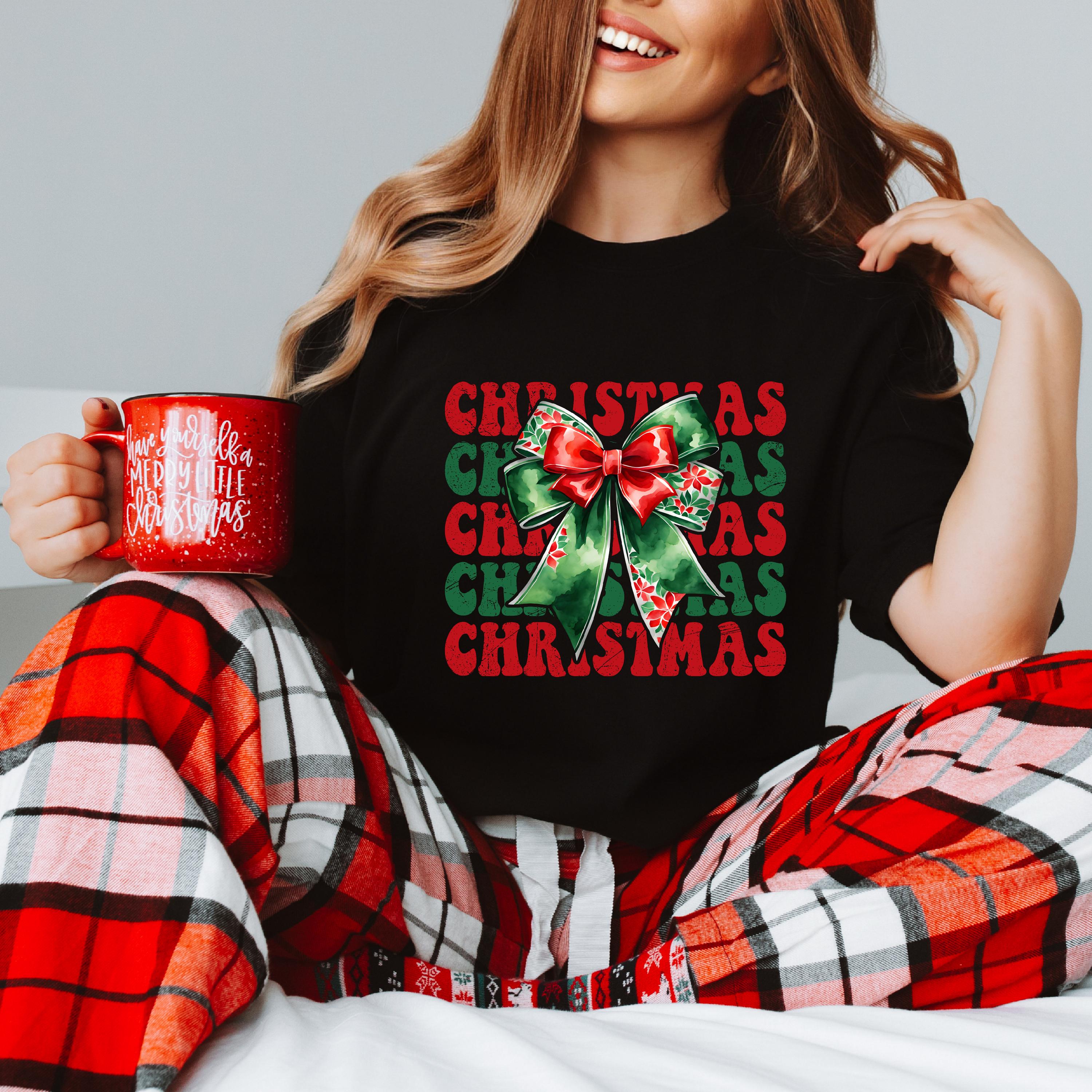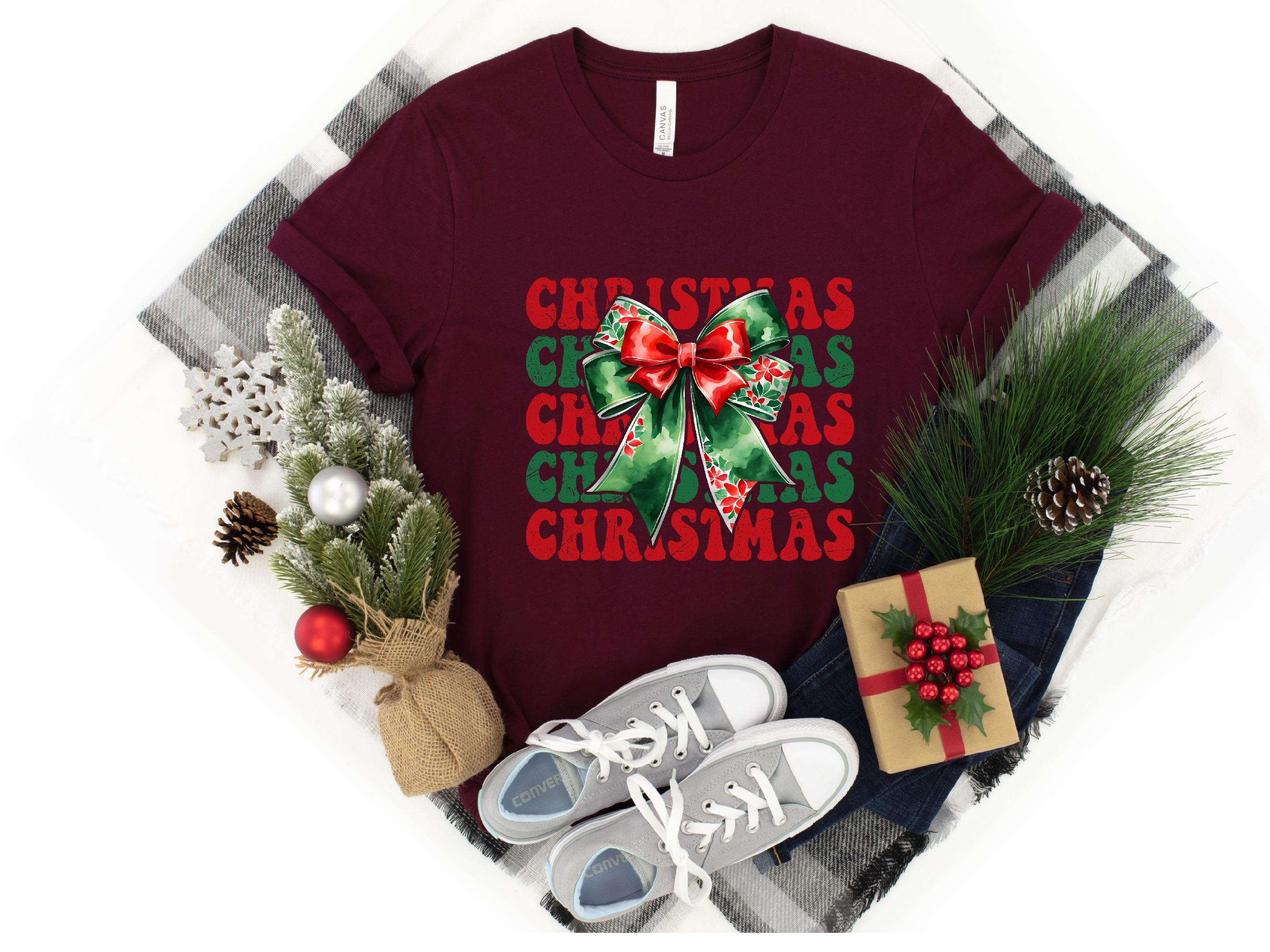 Christmas Shirts | Festive Holiday Shirt | Christmas Bow | Free Shipping