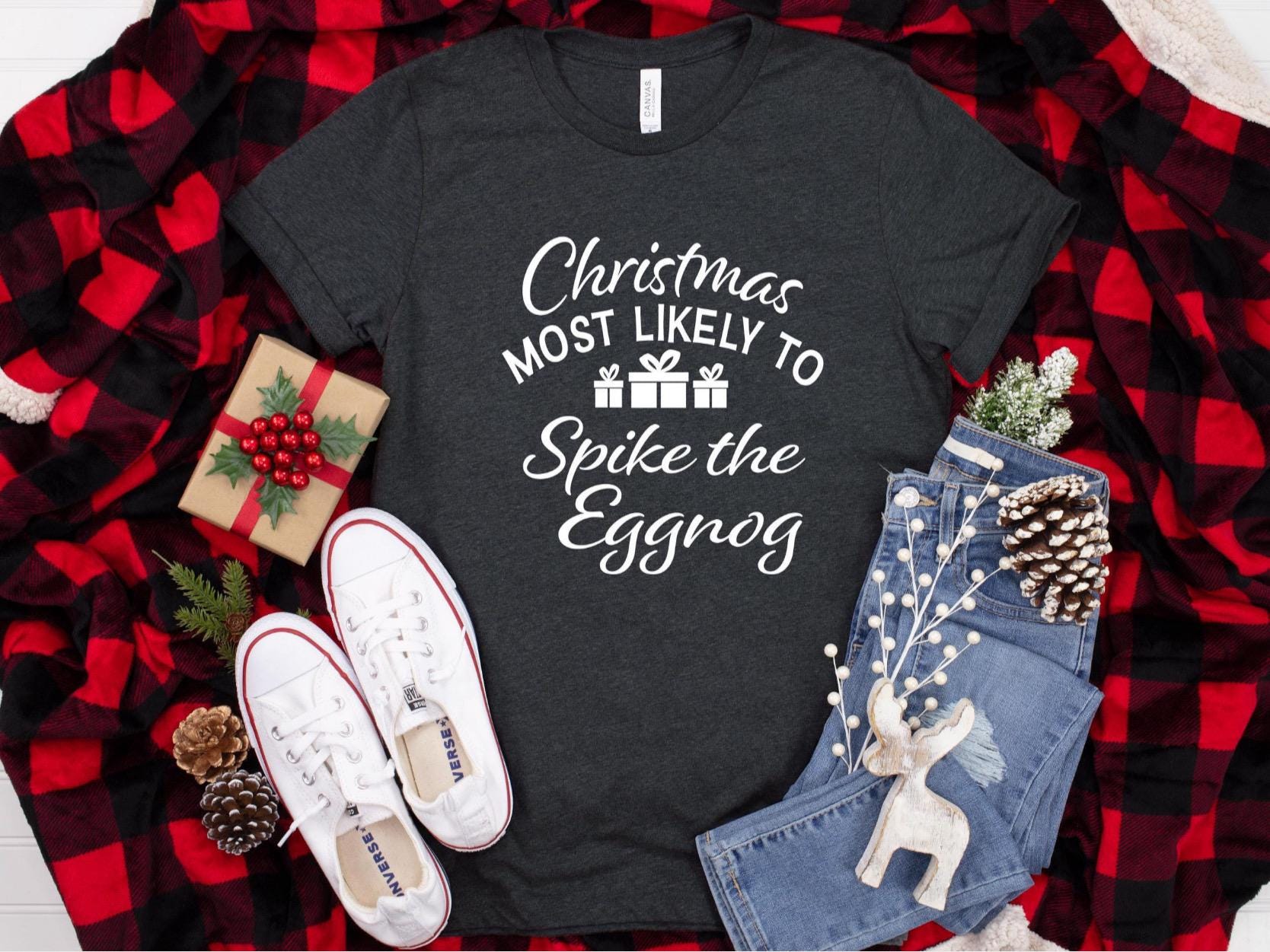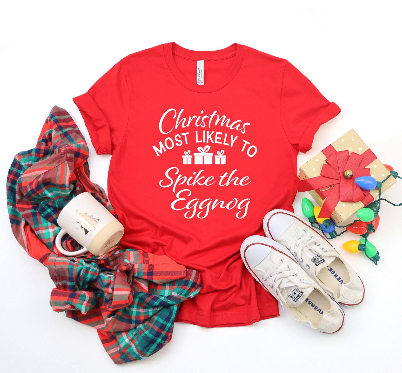 Spike the Egg Nog | Funny Christmas Shirts for Family | Christmas Most Likely To | Christmas Superlatives | Holiday Gift Ideas