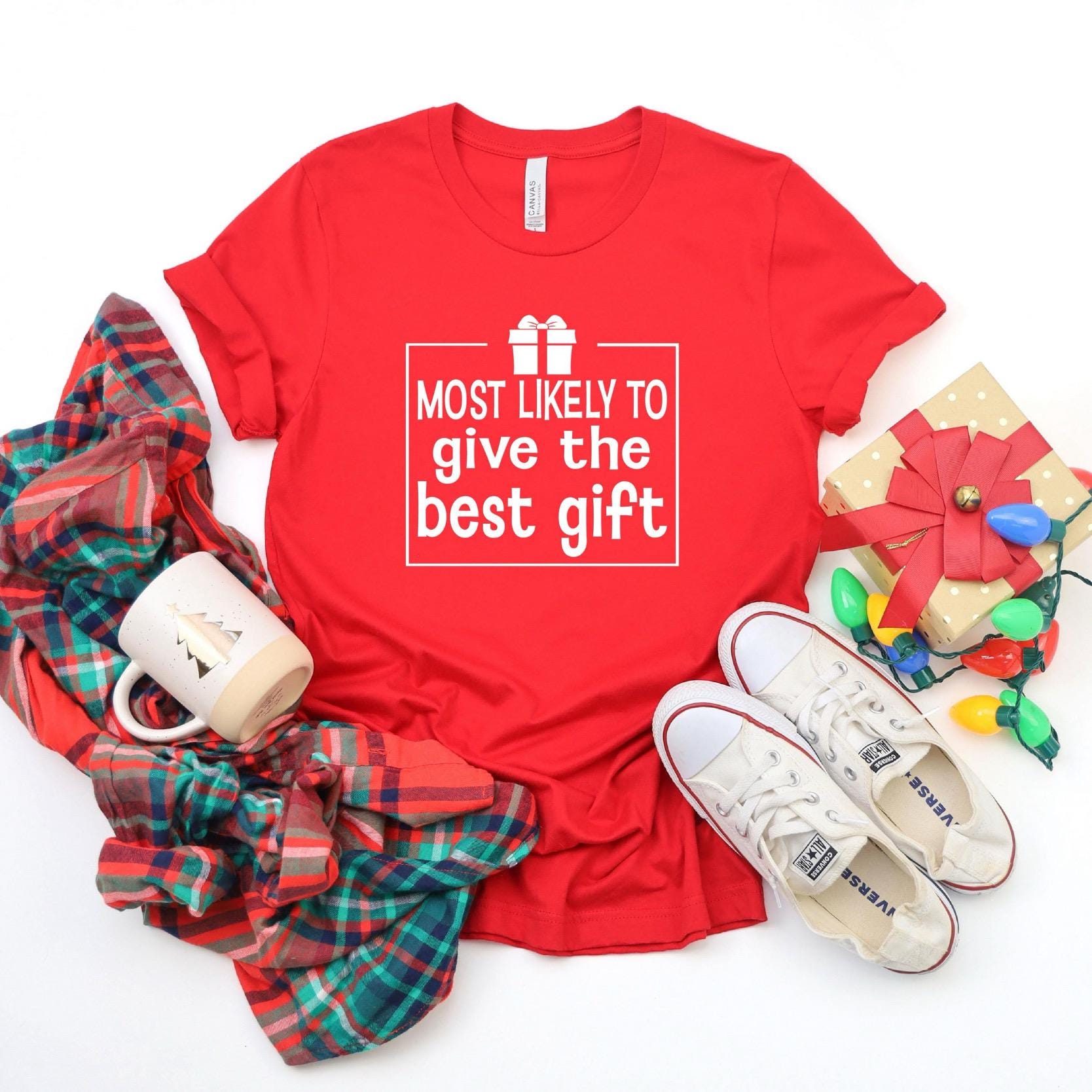 Trendy Christmas Top | Most Likely to give the best gift shirt | Classic Christmas Tshirts | Matching Family Christmas Shirts