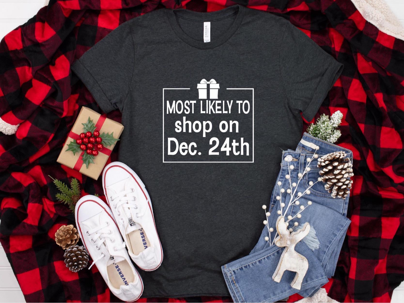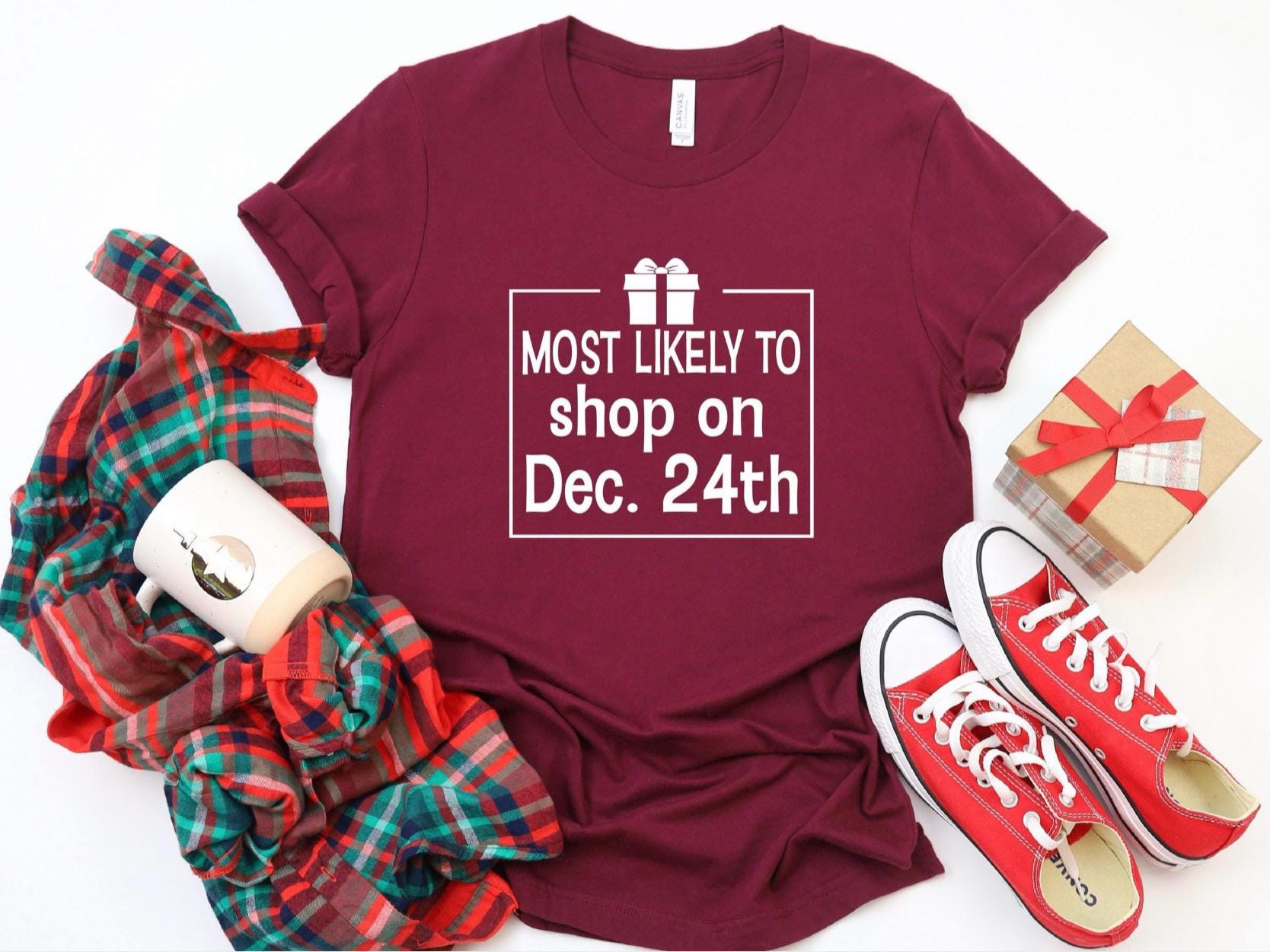 Funny Christmas Shirt | Shop on Christmas Eve Shirt | Christmas Most Likely To Shop on Dec 24th | Christmas Superlatives | Festive Pajamas
