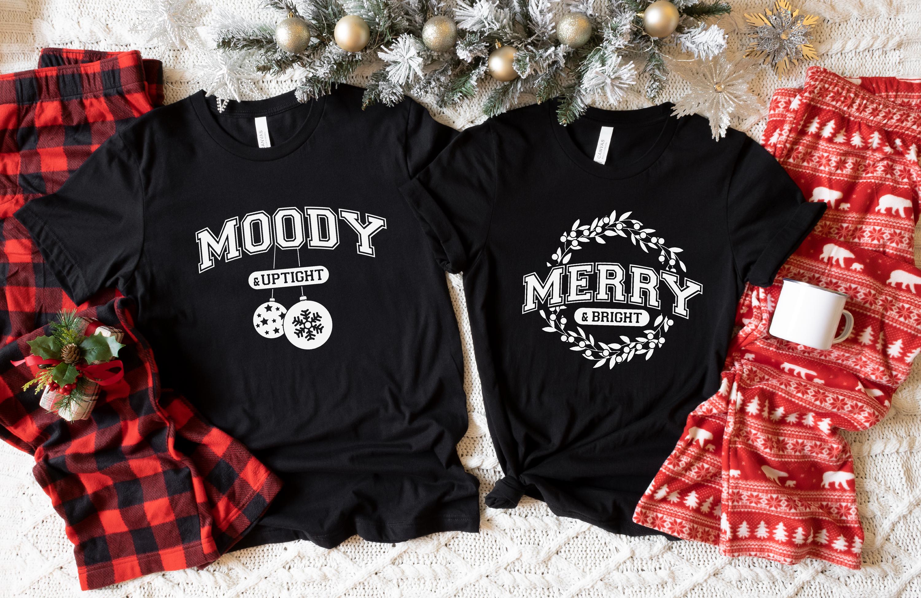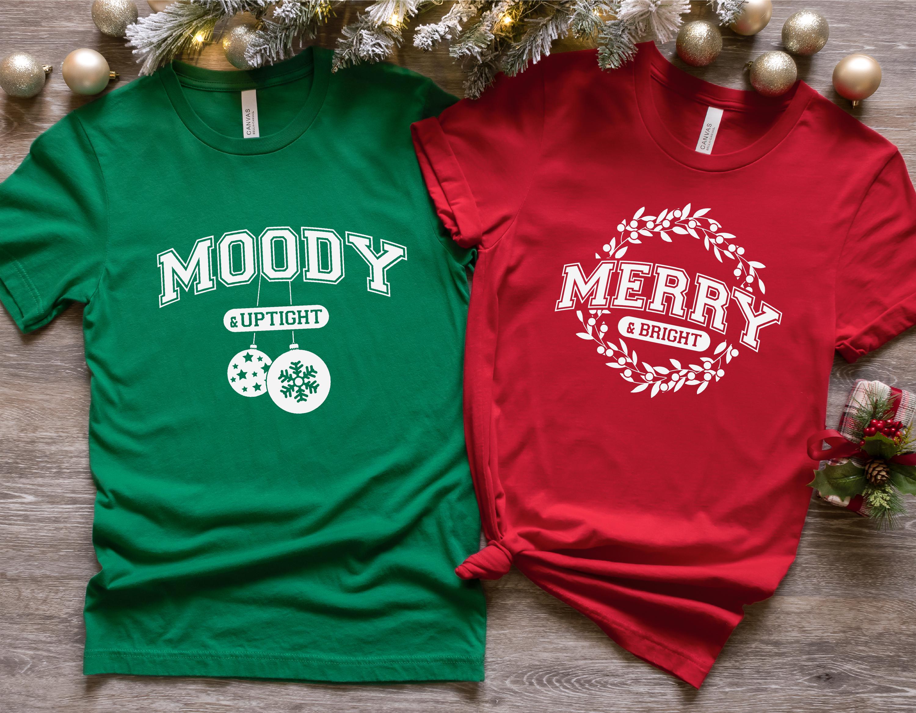 Merry and Bright | Moody and Uptight | Couples Christmas | Funny Christmas Shirt | Matching Shirts