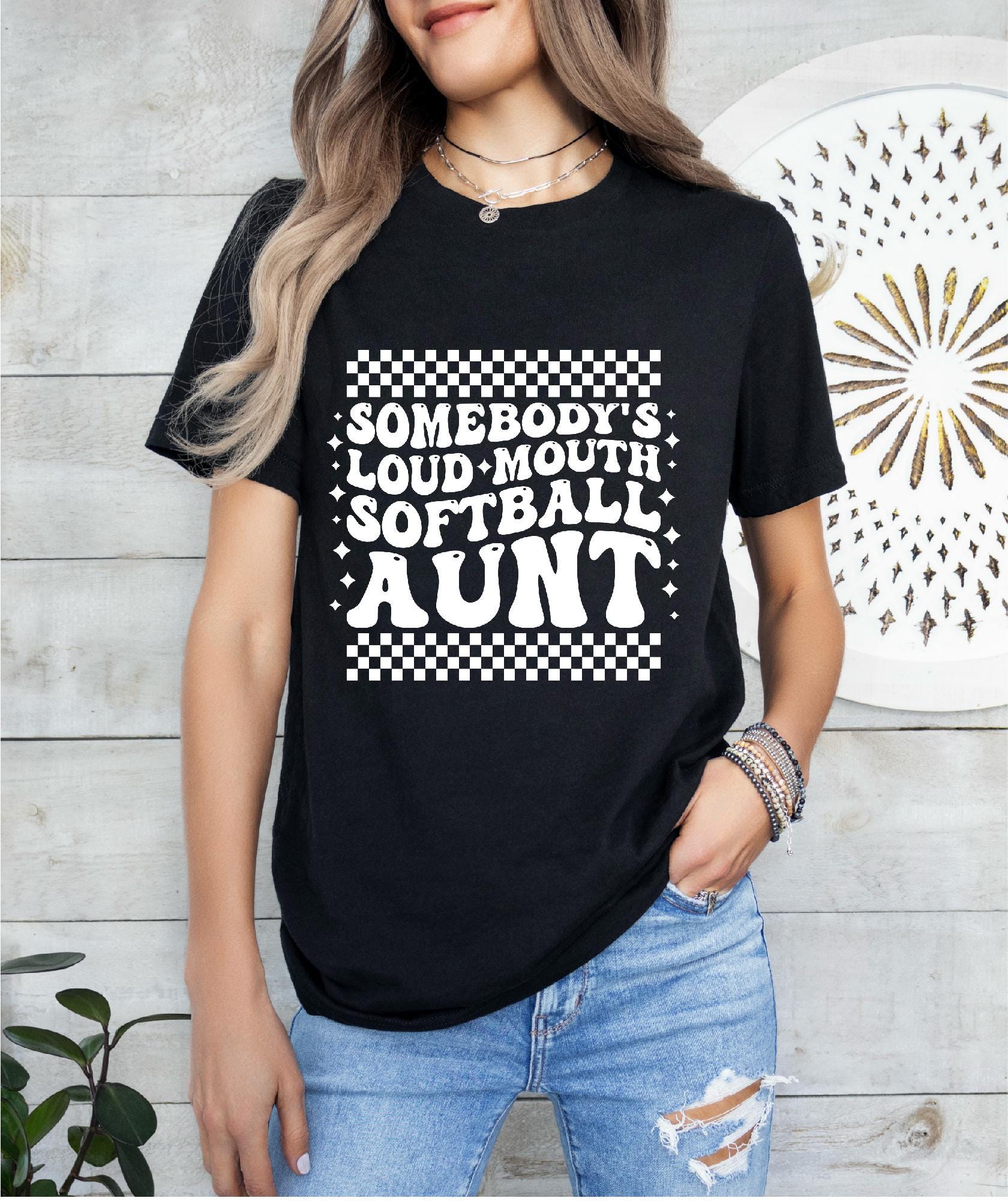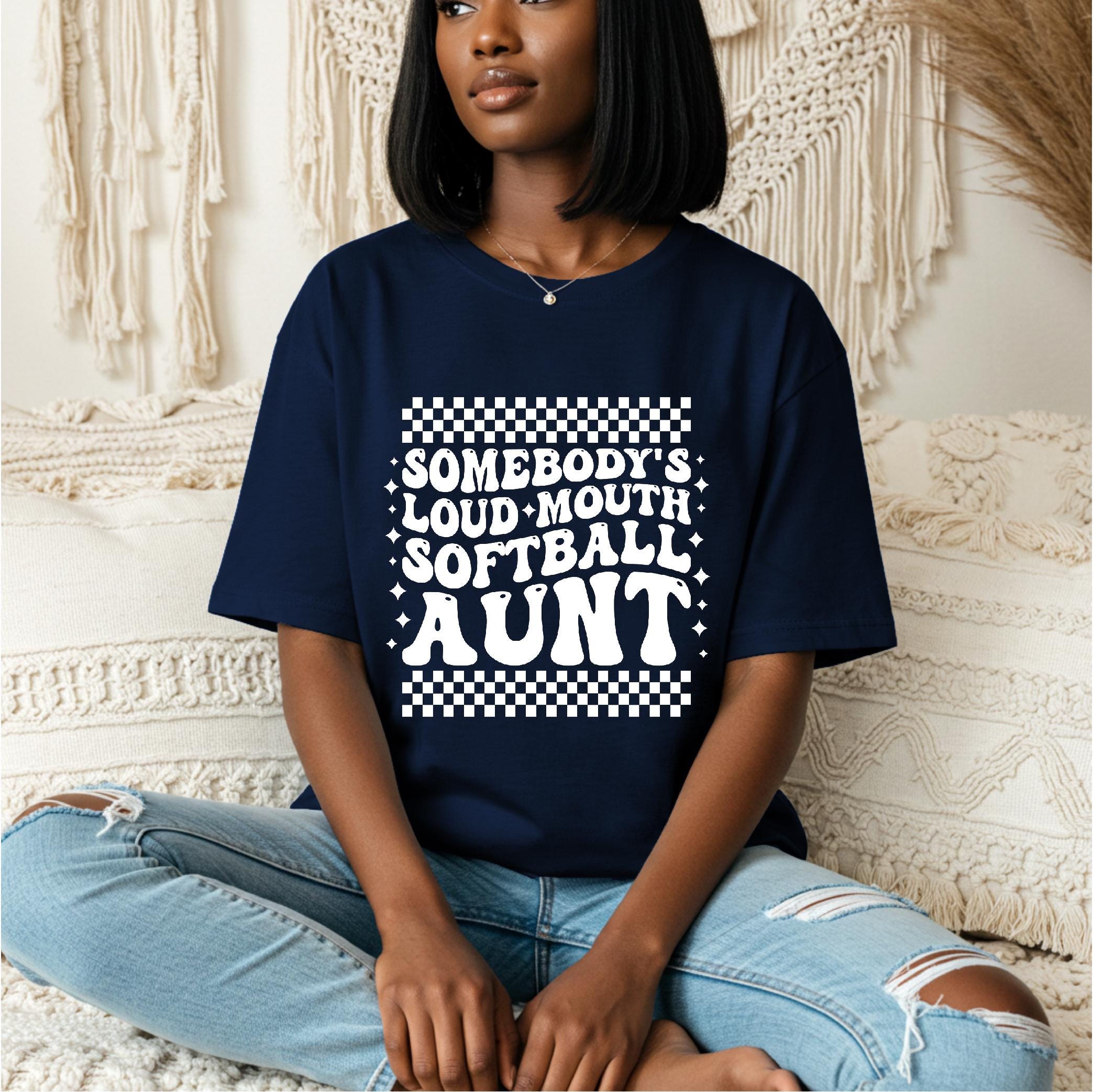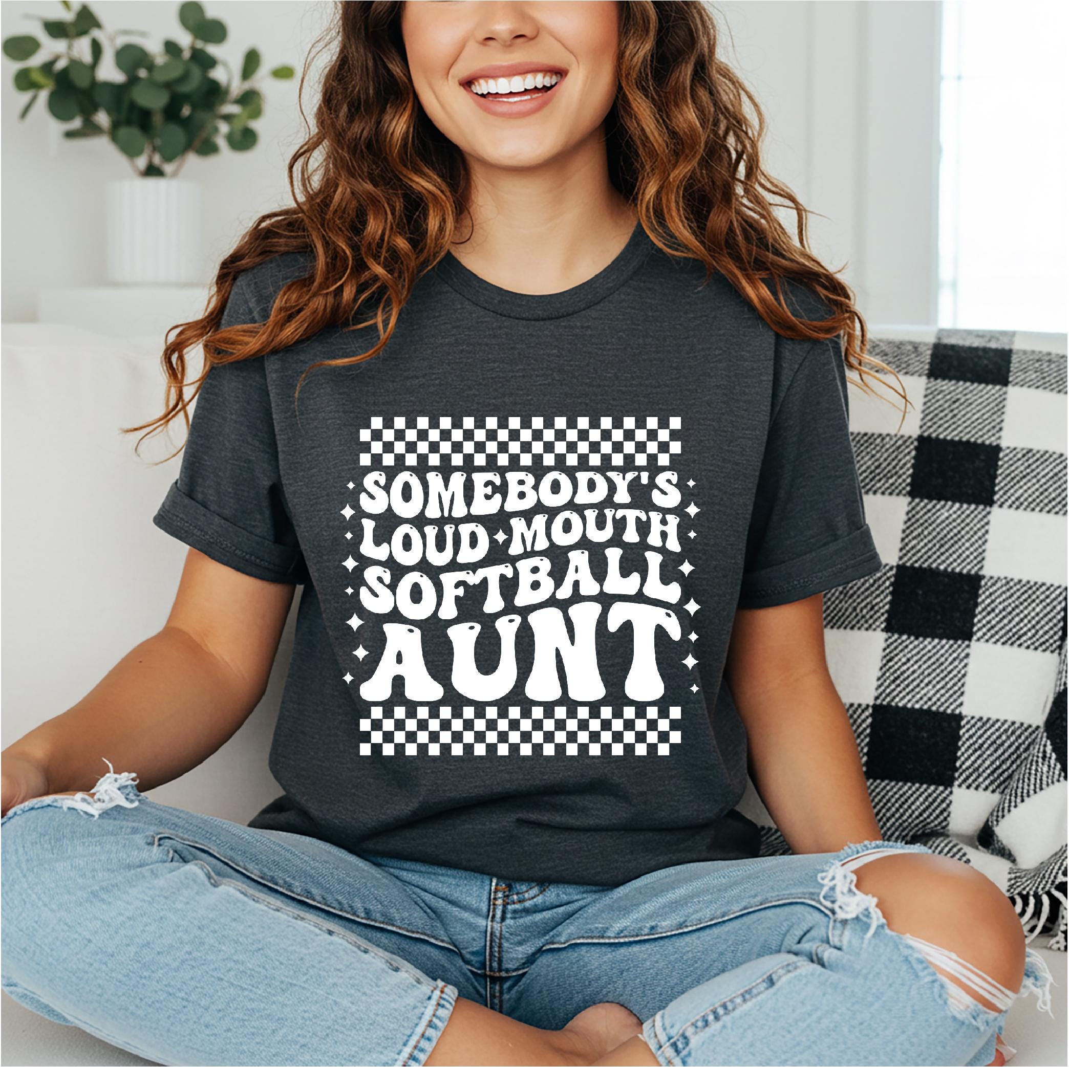 Loud Mouth Softball Aunt Shirt | White Design | Softball Game Day Shirt | Family Softball Shirts | Softball Gifts