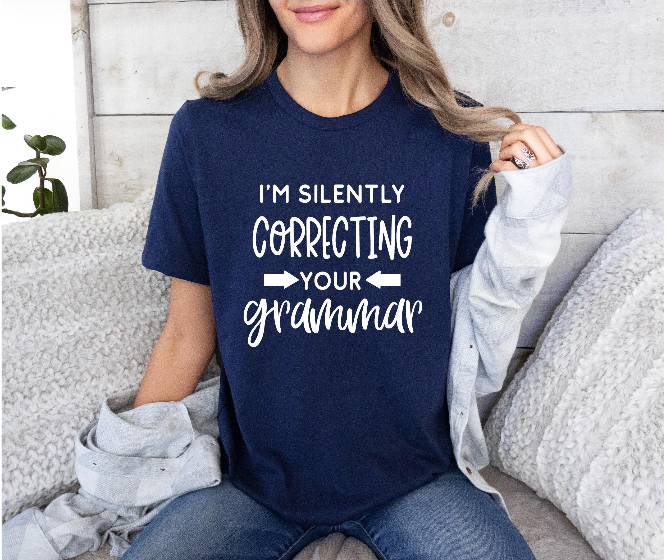 Sarcastic Shirt | I'm Silently Correcting Your Grammar | Funny Quotes Shirt | Free Shipping
